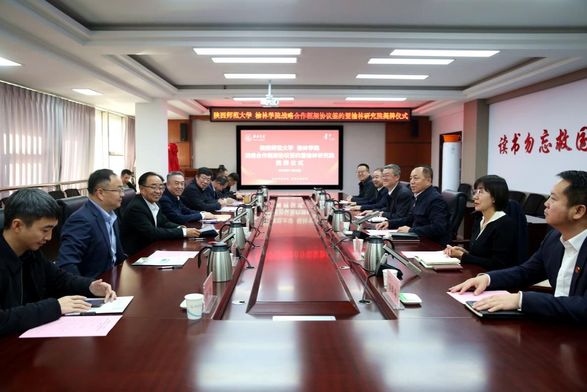 游旭群表示,榆林学院和陕西师范大学使命相通、优势互补,未来两校合作将迈入系统化、常态化的新阶段。希望双方凝聚力量、汇聚资源,全力产出一批有分量、能落地的标志性成果,切实将研究院打造成校校合作的新标杆、人才集聚的新高地、服务地方的新引擎;开展分层对接、健全合作机制、细化合作举措,把合作协议转化为具体行动,把合作愿景变为美好现实;进一步深化友谊、拓宽合作,让资源共享更充分、人才交流更频繁、科研协作更深入。